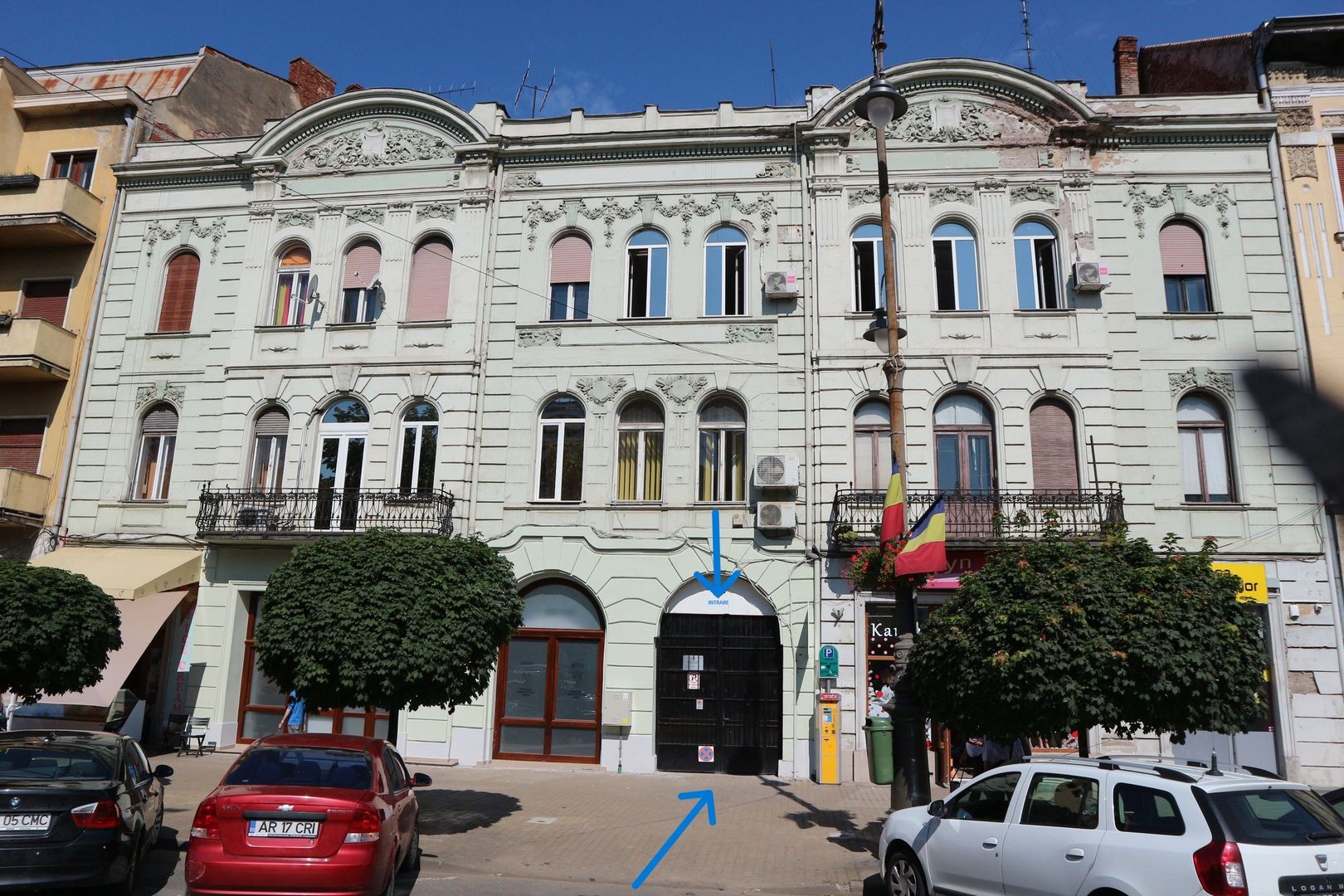 Situat vis a vis de Primaria Arad, cu acces din Bulevardul Revolutiei. Imobil S+P+3, suprafata totala 1.058 mp, include spatii de depozitare si birouri, plus cota indiviza teren 100 mp. Pozitie excelenta, zona premium, acces stradal dar situat in planul doi. Necesita investitii, ideal pentru reconversie: birouri, servicii, clinici, spații educaționale. Vecinatati: Primaria Arad, Palatul Neuman, Palatul Cultural, Universitatea Aurel Vlaicu, Universitatea Vasile Goldis. La pret se adauga TVA conform legislatiei.